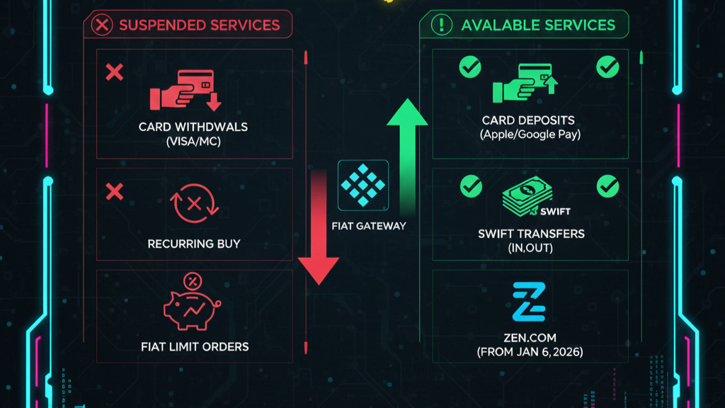 Od 29 grudnia 2025 roku giełda Binance wprowadziła istotne ograniczenia w obsłudze ukraińskich kont. Kluczową zmianą jest zawieszenie możliwości bezpośredniej wypłaty środków na karty płatnicze VISA oraz MasterCard. Decyzja ta wpływa na codzienne operacje tysięcy użytkowników korzystających z bramki fiat.