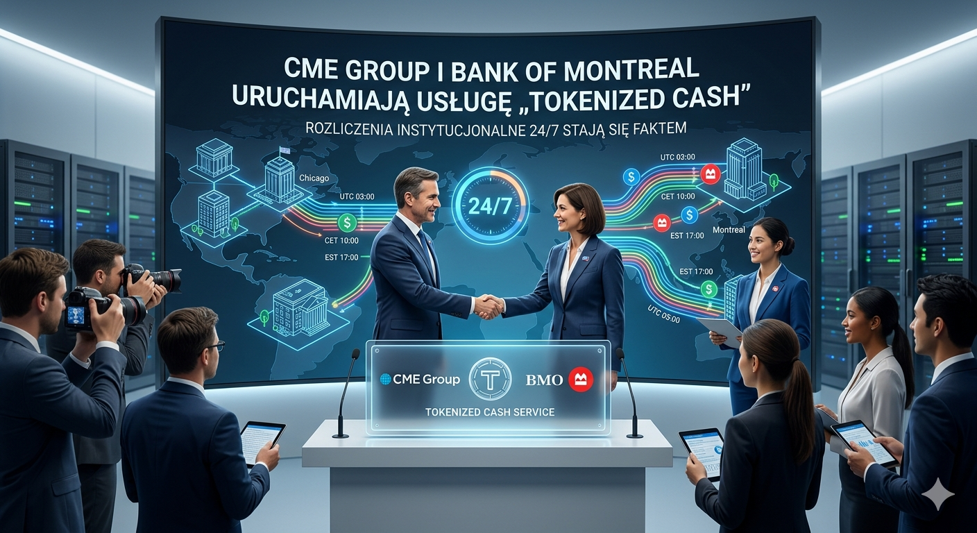 Jak donosi Bloomberg, największa na świecie giełda instrumentów pochodnych – CME Group – nawiązała współpracę z Bank of Montreal (BMO), aby stworzyć dedykowany serwis tokanizowanej gotówki dla instytucji finansowych. Projekt ten ma zrewolucjonizować sposób, w jaki banki i fundusze zarządzają płynnością i zabezpieczeniami (collateral).