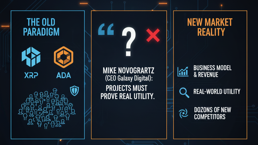 Potężna społeczność i wierni zwolennicy – to dzięki nim projekty takie jak XRP i Cardano (ADA) utrzymują się na szczycie list kapitalizacji rynkowej pomimo często burzliwych okresów. Jednak według Mike’a Novogratza, CEO Galaxy Digital, sama lojalność społeczności to już za mało. Novogratz ostrzega, że jeśli te projekty nie udowodnią realnej użyteczności, grozi im zapomnienie.