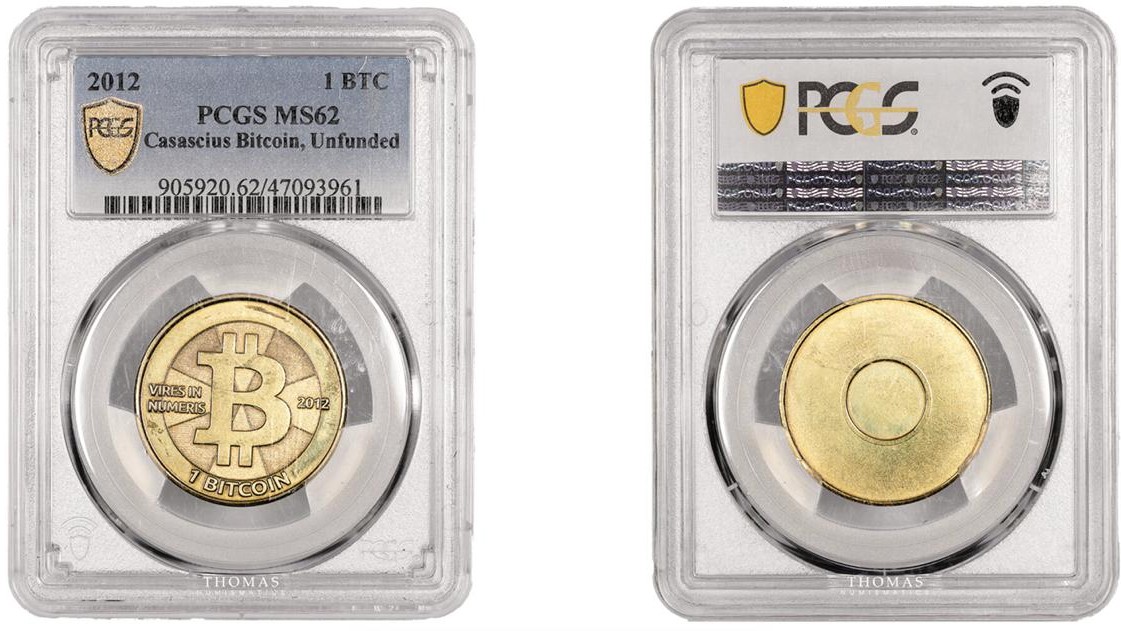 Casascius to fizyczne monety BTC wydawane w latach 2011–2013, zawierające prywatny klucz ukryty pod hologramem.