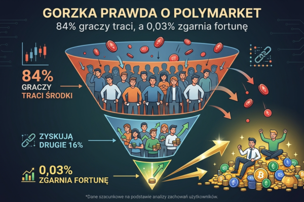 W miarę jak Polymarket staje się głównym źródłem danych o nastrojach społecznych i politycznych, nowe dane on-chain ujawniają mroczniejszą stronę platformy. Choć marketing obiecuje „mądrość tłumu”, statystyki pokazują, że tłum ten najczęściej odchodzi z pustymi rękami.